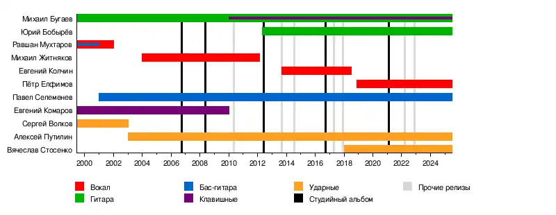 - Михаил Бугаев — гитара, акустическая гитара, клавишные, автор песен (с 1999)