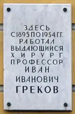 - ↑ Грекову И.И., мемориальная доска. Санкт-Петербург. Энциклопедия. Комитет по культуре Санкт-Петербурга. Дата обращения: 15 января 2013. Архивировано 19 ноября 2017 года.