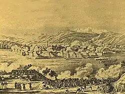 Движение российских войск беспокоило нового ереванского хана; он срочно решил пойти со своими отрядами к Апарану и остановить их. Однако потерпев поражение в Аштараке, отступил. В ходе столкновения 26 сентября 1808 года бойцы из Еревана потерпели поражение и отступили[16]. На следующий день группе российских войск, возглавляемой лично Гудовичем, удалось без труда занять Эчмиадзинский монастырь и разбить лагерь в селе «Карабах» под Ереваном. Когда это произошло, Хусейн-хан под командованием своего брата Гасан-хана Каджара, оставив в крепости гарнизон из двух тысяч человек, сам вышел из крепости с пятью тысячами воинов и расположился лагерем на берегу реки Гейдарчай[12].