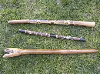 - Didjflute — диджериду с отверстиями как у флейты. Звук инструмента невыразителен, но в отличие от диджерибона, позволяет наигрывать довольно сложные мелодии.
