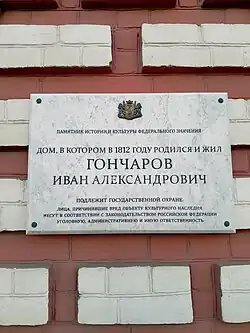 - ↑ 112 лет назад была открыта мемориальная доска на доме, где родился И.А.Гончаров.