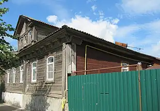 Деревянное здание с мезонином, дом построен столяром-краснодеревщиком Шабуниным в 1918 году. Архитектурный стиль — эклектика с обращением к рококо. Фасад разделён тремя пилястрами по торцам брёвен. Каждая пилястра украшена стилизованными пальмовыми листьями и мужскими масками. Пять окон на главном фасаде здания сохранили наличники, украшенные глубокой выемчатой резьбой и женскими масками[2].