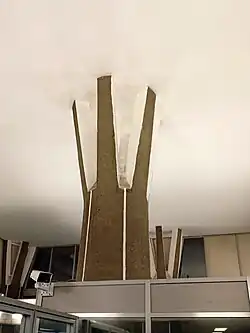 К боковому фасаду на 2019 год сделана стеклянная пристройка, главный фасад частично скрыт навесами над переходом через проспект[6].