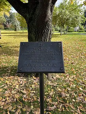 После полёта на космическом корабле «Восток-1» Юрий Гагарин прибыл 14 апреля в Москву, на торжественный приём в Большом Кремлёвском дворце[3]. Тогда-то он и посадил в Тайницком саду дуб.