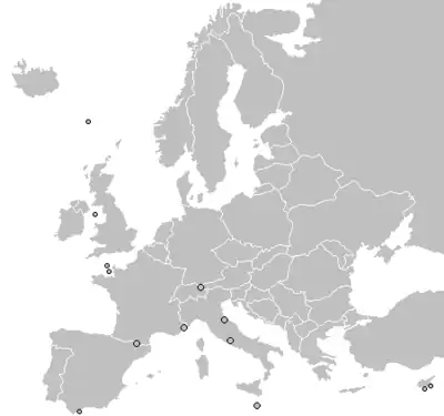 Лихтенштейн Россия (Европейская часть)[Комм 4][Комм 5] Финляндия Испания