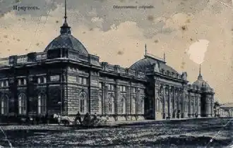 27 июня (9 июля) 1890 года на углу улиц Амурской и Арсенальской состоялась закладка фундамента здания. Проект и смета выполнены архитектором Владимиром Рассушиным. В 1891 году строительные работы были завершены. В том году здание дважды посещал прибывший в Иркутск из заграничной части своего Восточного путешествия с Дальнего Востока цесаревич Николай Александрович, будущий император Николай II: вечером 23 июня (5 июля) здесь наследник принимал обед, на котором громко, на весь зал, произнёс: «Пью за процветание дорогого мне Иркутска»; на следующий день цесаревич присутствовал на вечере в его честь, с которого отбыл на пристань у Ангары, где сел на пароход «Граф Сперанский» для отплытия. 6 (19) мая 1901 года состоялась торжественная закладка пристройки для большого концертно-театрального зала, проект составил вышеупомянутый архитектор. К 26 декабря 1902 года (8 января 1903 года) строительство было завершено. Вечером состоялось открытие, на нём присутствовали военный генерал-губернатор А. И. Пантелеев и губернатор И. П. Моллериус с супругами. Во время Революции 1905—1907 годов в здании и около него проходили митинги оппозиционно настроенной общественности. Так, на одином из них присутствовало около 5000 человек, речи произносили более 30 ораторов. 13 июля 1918 года в здании состоялся банкет в честь взятия Иркутска белыми. После установления в городе советской власти в 1920 году, в нём разместился Народный дом. 20 сентября того года на проходившем в здании заседании III губернской конференции РКП(б) с речью выступал Дамдин Сухэ-Батор. В 1928 году в одном из помещений разместился Клуб Октябрьской революции, в 1930-х преобразованный в Дом культуры профсоюзов. С 1941 по 1990 годы в нём располагался Иркутский областной театр музыкальной комедии. В 1950-х годах часть здания была отведена для Иркутской областной филармонии. В 2006 году в него переехал и Иркутский областной театр юного зрителя им. А. Вампилова (ранее в здании располагался лишь его филиал).
