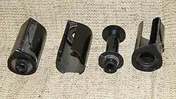 | «Зенит-3М», вид сверху. | «Зенит-3М» с наглазником. Кронштейн для фотовспышки снят. | «Зенит-3М» в раскрытом виде. Указан штырёк открытия кассеты. | Кассета КМЗ с раскрывающимся флокированным устьем. | «Зенит-3М» с объективом «Юпитер-37А» (с адаптером на М39×1/45,2), «Юпитер-37А» с М42×1/45,2 и сменный хвостовик с байонетом К. |