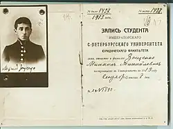 В 1913 году Зощенко окончил восьмую Санкт-Петербургскую гимназию. Один год учился на юридическом факультете Императорского Санкт-Петербургского университета (был отчислен за неуплату)[10][11]. Летом подрабатывал контролёром на Кавказской железной дороге[12].