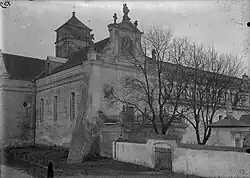 Монастырский костёл (1606—1610) построен по проекту львовского архитектора Джакомо Мадлена (Якуб Мадлайн), перестроен в середине XVIII в. итальянским архитектором Паоло Фонтана. Здание кирпичное, зального типа, с ризалитами и притвором, перекрыт сводами. Кровля черепичная. Над южным ризалитом башня, покрытая невысоким шатром. Над притвором открытая галерея с металлической решёткой. Над западным фасадом и северным ризалитом барочные фронтоны, украшенные волютами и пилястрами[30].