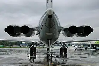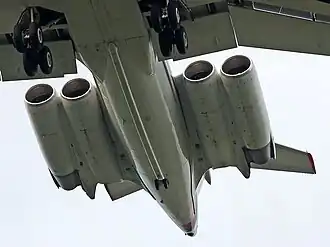 На внешних двигателях установлены механизмы реверсирования тяги, для сокращения дистанции пробега при посадке.