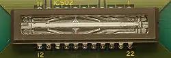 Корпус микросхемы — это конструкция, предназначенная для защиты кристалла микросхемы от внешних воздействий, а также для удобства монтажа микросхемы в электронную схему. Содержит собственно корпус из диэлектрического материала (пластмасса, реже керамика), набор проводников для электрического соединения кристалла с внешними цепями посредством выводов, маркировку.