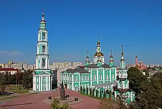Кафедральный Спасо-Преображенский собор; Троицкая церковь, выстроенная в 1642 году <…> в Пушкарской слободе; Знаменская, построена в Стрелецкой слободе, но в какое время неизвестно; Архидиаконская, выстроена усердием купца Уткина <…>; Покровская, выстроена первоначально деревянной в Покровской слободе, заселённой тягловыми крестьянами, ныне находится на Покровской площади; Варваринская, выстроена первоначально в однодворческих гумнах, на кладбище, ныне находится в черте города на площади против Астраханской улицы; Архангельская, первоначально построенная за девичьем монастырём, перенесена впоследствии (в 1878 году) ближе к городу, ныне же заложена вместо неё у Московской заставы новая каменная. <…> Домовые церкви: в заведении приказа общественного призрения во имя Александра Невского (основана в 1842 году); в тюремном замке во имя Скорбящей Божьей Матери, выстроена в 1818 году в юго-восточной стороне корпуса…; в кадетском корпусе во имя Архистратига Михаила, выстроена в 1840 году; в институте во имя Великомученицы Александры, выстроена в 1843 году.