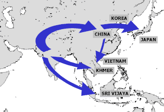 C XI века, когда буддизм Махаяны после исламского завоевания Индии стал приходить в упадок, сократились торговые пути через Индию, но стали развиваться пути из Ближнего Востока в Китай через Шри-Ланку. Это привело к тому, что Юго-восточная Азия приняла буддизм Тхеравады от монахов из Шри-Ланки, которые распространили палийский канон.