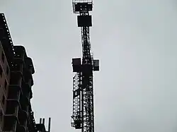 - Затем верхнюю часть башни опускают на новую секцию, секции стыкуют и кран может работать с повышенной высотой подъёма[5].