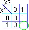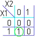При заполнении карты на пересечении строки и столбца проставляется соответствующее значение из таблицы истинности — 0 или 1. После того как карта заполнена, приступают к минимизации.