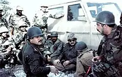 - ↑ "Подвергались также испытанию некоторые образцы боевого снаряжения: новый шлем пехотинцев, изготовленный из сплава легких металлов и весивший на 15% меньше старого шлема, броневые жилеты, предназначенные для защиты личного состава от пуль и осколков"