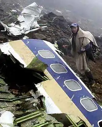 На следующий день обломки авиалайнера были найдены на склоне Кумбаля на высоте около 14 700 футов (4480 метров) и в 1400 футах (426 метров) от вершины. В условиях облачности Боинг на высокой скорости врезался в склон вулкана и полностью разрушился. Все 94 человека на борту погибли[1].