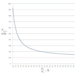Если объём полностью заполнен взрывоопасной смесью, то избыточное давление возникающее в замкнутом объеме в процессе горения: [37], это соотношение используется для практических расчётов и при частичном заполнении объема смесью: , где - максимальное давление возникающее при сгорании смеси, - начальное давление, - объем сгоревшей смеси, - объем помещения, - доля сгоревшей смеси.[38]:366[39] Величина первоначально характеризовала взрывопожароопасность помещения. К категориям А, Б относили производства, если эта величина превышала 5% для производственного помещения.[40]