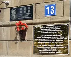 Мемориальная доска на доме где проживал Ю.М. Кисилёв, ул Дзержинского,13.1977-1980 гг., первый секретарь Ленинского райкома партии города Барнаула;