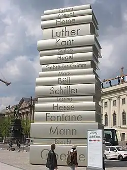 Памятник книгам в г. Берлин (Германия). Открыт 21 апреля 2006 года в честь изобретателя современного книгопечатания, Иоганна Гутенберга.