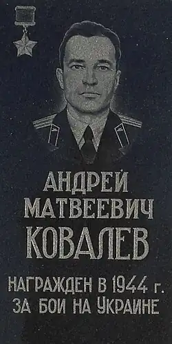 - ↑ Мемориальная доска Ковалёву Андрею Матвеевичу. Сайт архиват.рф. Дата обращения: 8 июля 2015. Архивировано из оригинала 10 августа 2016 года.