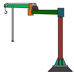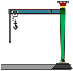 Колонна неподвижно соединена с плитой, прикреплённой болтами к фундаменту. Максимальный вылет от 2,5 до 5 м. Высота подъёма до 4 м [1].