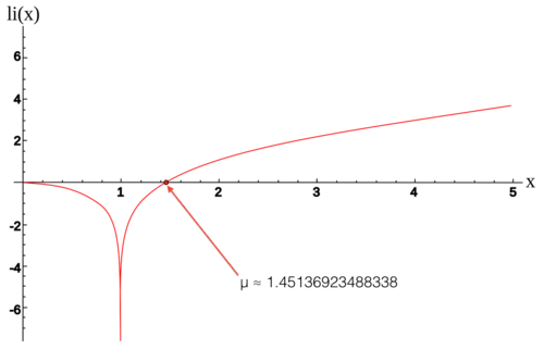 Её значение равно примерно μ ≈ 1.45136923488338105028396848589202744949303228… последовательность A070769 в OEIS.