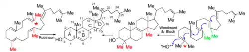 - ↑ J. W. Cornforth, G. Popják. Studies on the biosynthesis of cholesterol. 3. Distribution of 14C in squalene biosynthesized from [Me-14C]-acetate // Biochem. J., 1954, v. 58, p. 403–407.