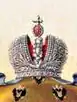 | Корона Петра II (1728) | Создана по образцу короны Екатерины I. Была передана в кремлёвскую сокровищницу 16 августа 1728 года, забрана оттуда 31 декабря 1729 года. При передаче была составлена опись, согласно которой «нижняя лента» — обод; «подзор с листами» над ободом; две «пукли» — полушария; «серебряная чеканная лента» — центральная арка; «лента по сторонам пуклей» — по центру полушарий; навершие; помимо алмазов, бриллиантов и крупных жемчужин корону украшало большое количество цветных камней («водокшанских лалов», «яхонтов лазоревых», изумрудов), а венчал её «лал большой» ценой 60 тыс. рублей в ободке из бриллиантов, над которым возвышался крест из девяти «четвероугольных греческих алмазов»[3]. | Разобрана. | |