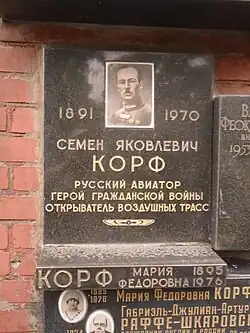 Семён Яковлевич Корф (1891—1970) — военный лётчик, участник Гражданской войны, дважды Краснознамёнец (1920, 1921).