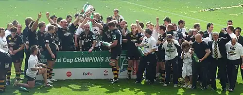 - ↑ «Уоспс» обошли «Лестер Тайгерс» в жеребьёвке, поскольку занесли на групповом этапе 23 попытки, в то время как игроки «Лестера» — 22.