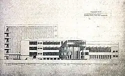 К строительству комплекса приступили в 1930 году. В процессе работы первоначальный проект видоизменили, упростив один из объёмов. К осени 1932 года Учебный корпус был готов на 98 %.