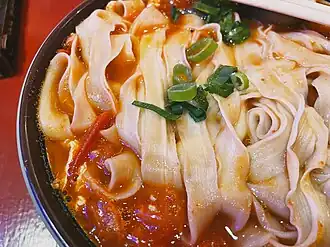 Ламянь (упр. 拉面, кит. трад. 拉麵, пиньинь Lāmiàn) — разновидность китайской лапши из мягкой пшеничной муки, которая особенно распространена в северном Китае. Ламянь изготавливается путем скручивания, растягивания и складывания теста в жгуты (пряди, нити) вручную. [1] Длина и толщина нитей зависит от того, сколько раз складывается тесто. [1] Этот уникальный способ приготовления лапши зародился в Китае. [1] «Сун Ши Ян Шэн Бу» (упр. 宋氏养生部, кит. трад. 宋氏養生部, пиньинь Lāmiàn), написанная Сун Сюй и датируемая 1504 годом, содержит самое раннее описание метода изготовления Ламянь. [1] Отличительной особенностью теста для тянутой лапши, которая позволяет лапше тянуться и делает её особенно скользкой и плотной, является включение в состав щелочных добавок (алкалиновая вода, поташ, карбонат натрия, натрон).