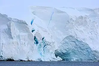 - Ледяной поток — полосовидный участок ускоренного движения льда «морского» ледникового щита, текущий в ледяных берегах, но обычно следующий долинообразным понижениям ложа. При впадении в морские бассейны может питать шельфовый ледник или распадаться на айсберги.