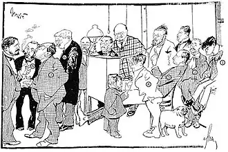 ![]() Шарж-автопортрет М. С. Линского. 1910-е годы | |
