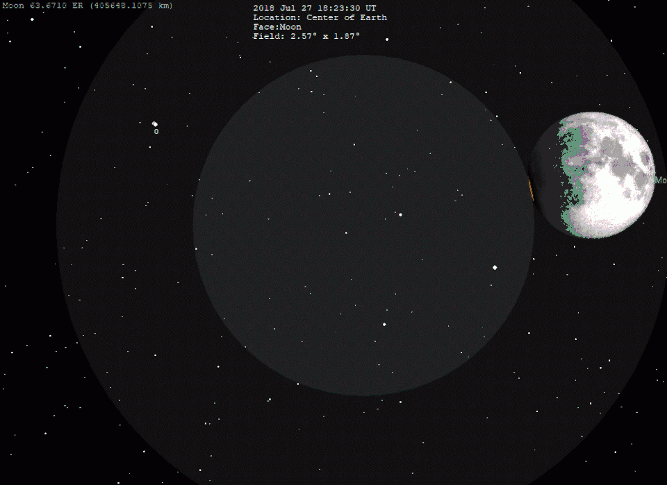 В момент затмения Луна находилась вблизи соединения с Марсом, причём на это время пришлось великое противостояние (перигелийная оппозиция) Марса, достаточно редкое событие, повторяющееся с периодичностью 15—17 лет. Совпадение настолько длительного полного лунного затмения с великим противостоянием Марса происходит лишь раз в 25 тысяч лет[2].