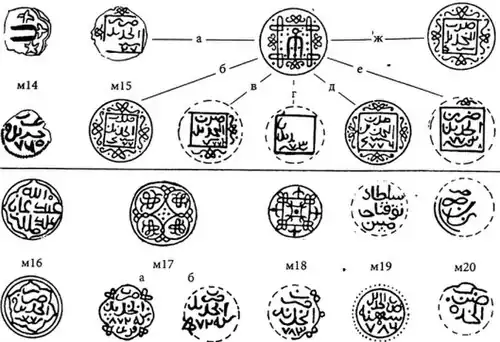 - ↑ Пачкалов А. В. Монетное дело Маджара (Маджара ал-Джедид) // Северный Кавказ и кочевой мир степей Евразии: VI «Минаевские чтения» по археологии, этнографии и краеведению Северного Кавказа. Ставрополь, 2003. С. 84-86