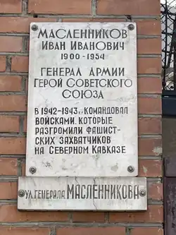 Ива́н Ива́нович Ма́сленников (3 [16] сентября 1900, станция Чалыкла, Самарская губерния — 16 апреля 1954, Москва) — советский военачальник, генерал армии (1944). Герой Советского Союза (8 сентября 1945).