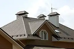 Металлочерепица — кровельный материал, представляющий собой листы, изготовленные из тонколистовой стали, алюминия или меди, покрытые полимерным защитным слоем, профилированные методом холодного давления. Листы металлочерепицы по внешнему виду напоминают кладку керамической черепицы.
