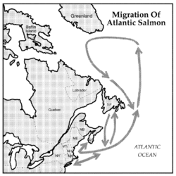 Миграция атлантического лосося из реки Коннектикут в океан[2]