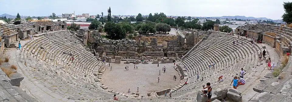 Город Мира был расположен в 5 км от берега Средиземного моря. От города сохранились развалины греко-римского театра и высеченные в скалах гробницы. Своеобразие гробниц можно объяснить тем, что у жителей древней Ликии существовал обычай хоронить мёртвых на возвышенных местах, так как предполагалось, что это поможет им попасть на небо.