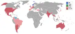 Австрия, Коста-Рика, Финляндия, Ирландия, Никарагуа, Нигерия, Польша, Россия, Шри-Ланка, Швеция, Украина |