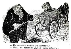 Василий Михайлович Михеев был добродушный, неимоверной толщины маленький человек с длинными волосами, с чисто русским лицом. Он был литератор из сибирских золотопромышленников. Появление Василия Михайловича вызывало везде и всегда единодушное удивление, улыбку, до того он был забавен своей толщиной. По улице он, бывало, катился, как большой мяч. Писатель он был из второстепенных, но любил свое ремесло очень, считал себя поэтом, народолюбцем, либералом (М. В. Нестеров, мемуары).