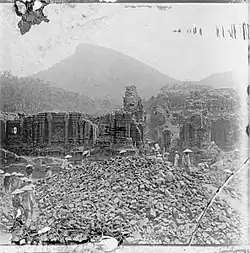 Война за независимость и Война во Вьетнаме прервали изучение Мишона. Во время Вьетнамской войны партизаны устроили в Мишоне штаб и заминировали все подходы к нему, из-за чего в 1969 году почти все строения Мишона были уничтожены или повреждены американской ковровой бомбардировкой[71]. Храм A1, признанный шедевр архитектуры Юго-Восточной Азии, был полностью разрушен[72]. Бомбардировку прервали по горячей просьбе Филиппа Стерна, отправившего срочное прошение Ричарду Никсону[72].