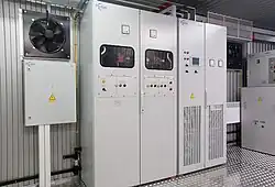 В состав выпрямительного агрегата входят две (номинальный ток 1600 А) или четыре (номинальный ток 3200 А) выпрямительные секции с системой управления, защиты и сигнализации.