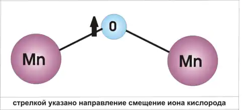 В результате эффекта Дзялошинского-Мориа происходит смещению ионов О, расположенных между ионами Mn. При этом оказывается, что в спиральном состоянии взаимодействие Дзялошинского-Мориа смещает все кислороды в одном направлении, перпендикулярном спиновой цепочке. Поскольку ионы кислорода заряжены отрицательно, а ионы марганца, образующие спиновую цепочку, положительно, возникает электрическая поляризация.