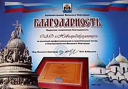 - ↑ Решение Думы Великого Новгорода от 23.12.2004 № 45 «О муниципальных наградах Великого Новгорода» (недоступная ссылка)