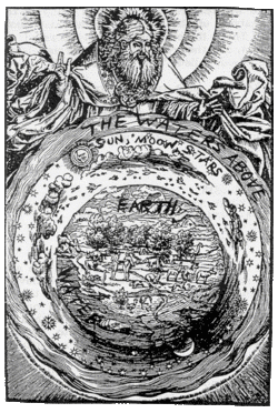 Быт. 1:7: «И создал Бог твердь; и отделил воду, которая под твердью, от воды, которая над твердью»[3]. Также Быт. 7:11, 12: «В шестисотый год жизни Ноевой, во второй месяц, в семнадцатый день месяца, в сей день разверзлись все источники великой бездны, и окна небесные отворились; и лился на землю дождь сорок дней и сорок ночей».