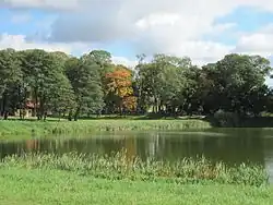 Замок был окружён широким рвом, который сначала был сухим, а после начал заполнятся водой. Уровень воды во рву регулировался. Замок был фактически островным, с двумя водными рубежами. Попасть в замок можно было по длинному деревянному мосту через озеро. В случае опасности мост легко разбирался. Этот мост достигал оборонительного рва с переброшенным через него подъёмным мостом[3]. Также перед входом на замковый мост существовал земляной редут, отделённый от остальной территории рвом шириной до 8 м и глубиной 2 м.