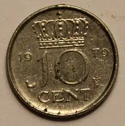 | 1 гульден | 0,45 | Королева Юлиана | 1943 | ||||||